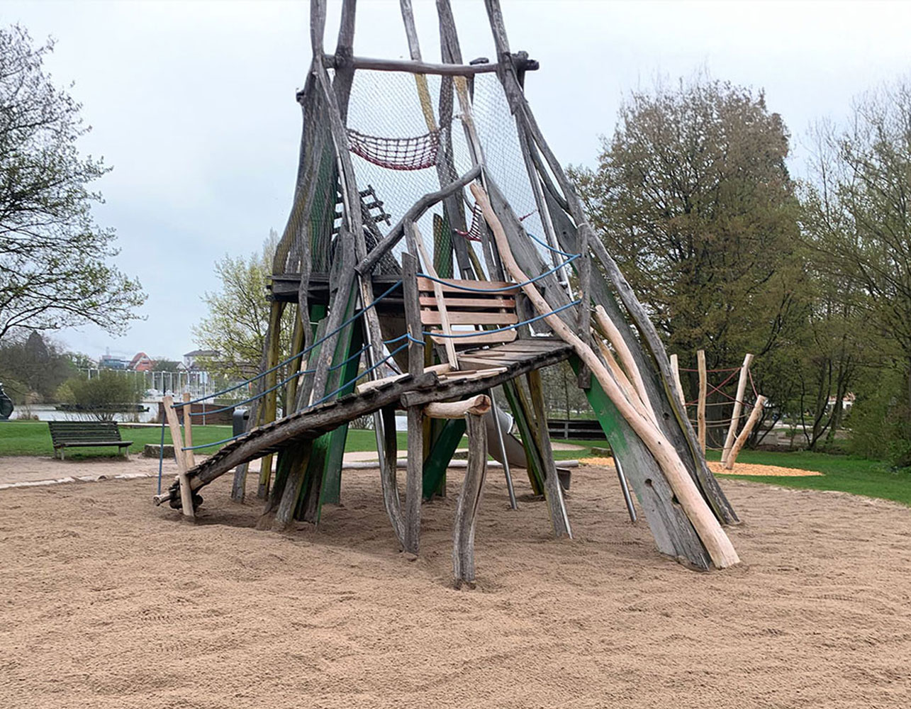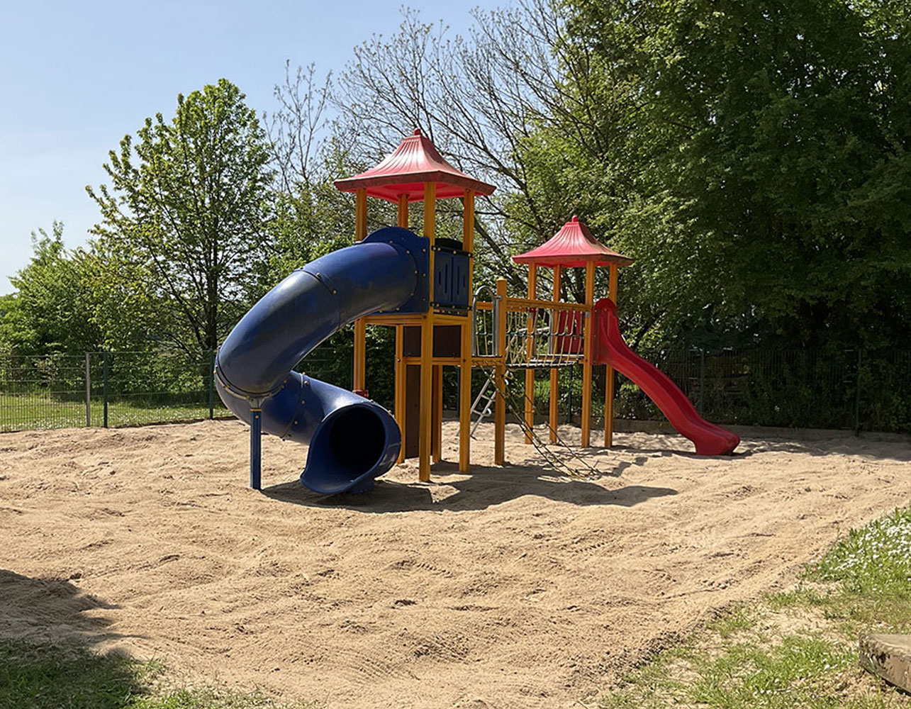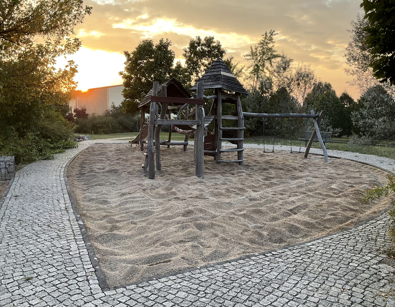 Ein Spielplatz mit frisch gereinigter Sandfläche nach professioneller Sandreinigung.